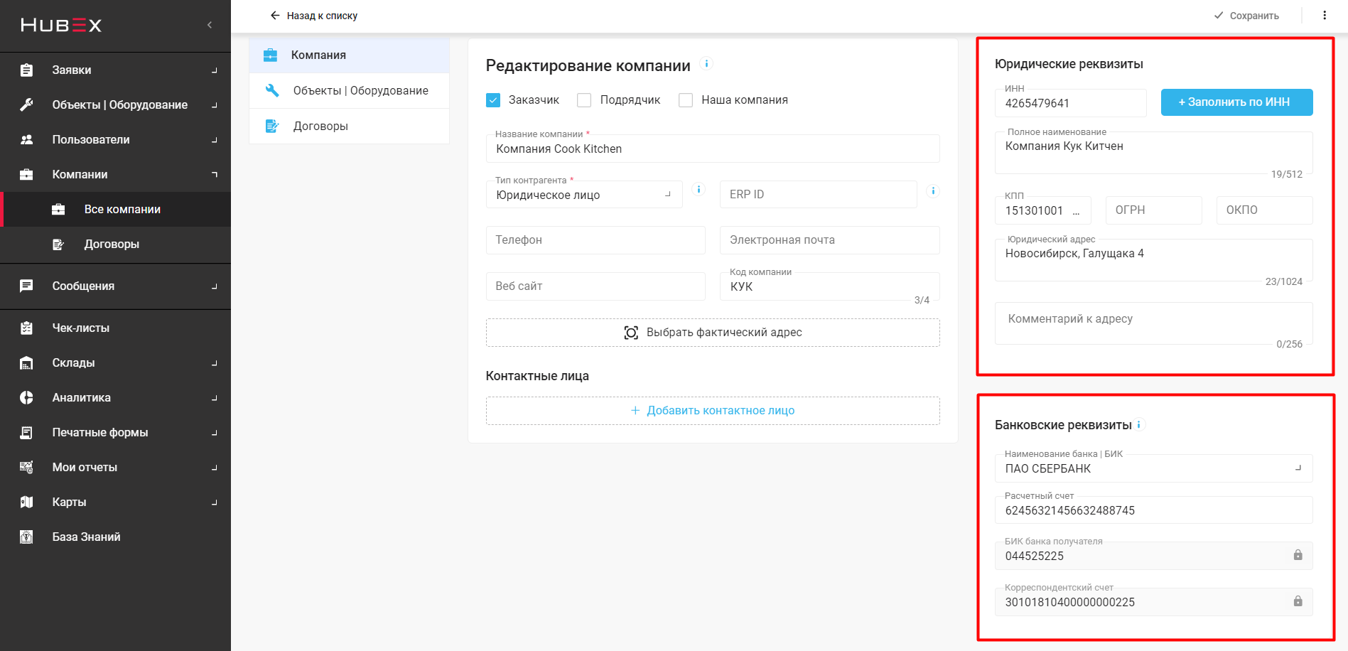 - Перейдите в левое боковое меню HubEx, раздел "Компании", подраздел "Все компании";