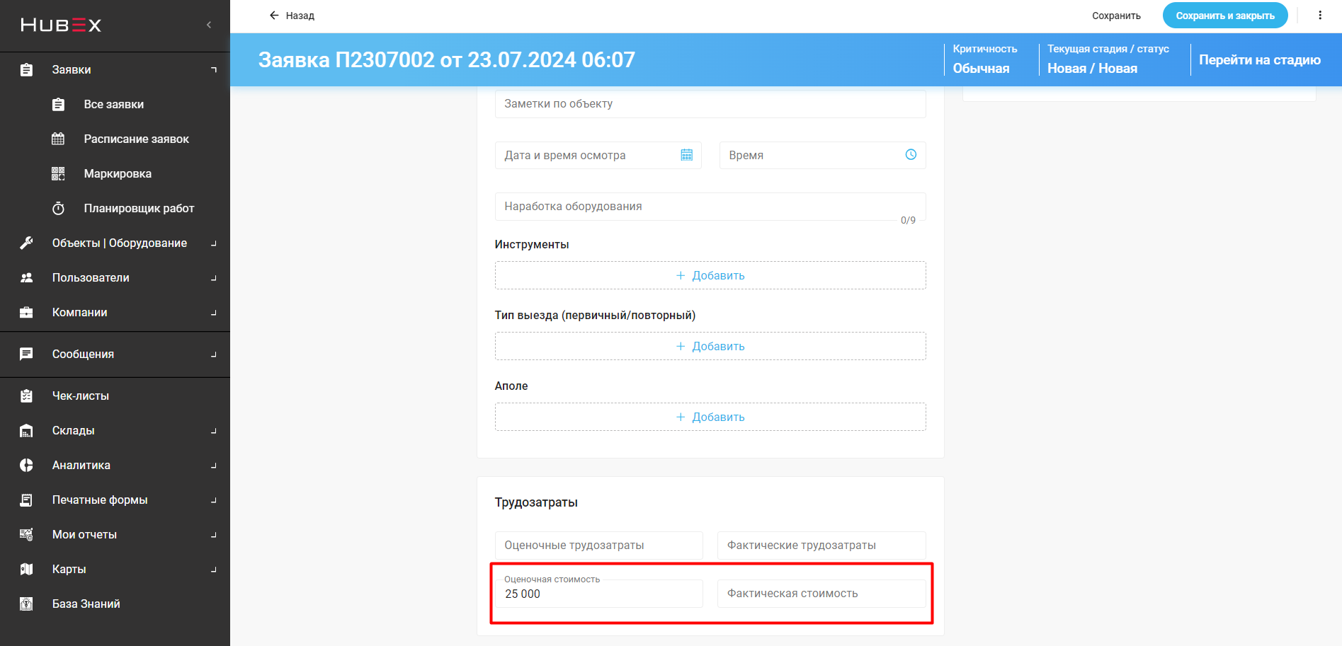 Оценочная стоимость указывается, например, диспетчером перед тем, как исполнитель выезжает на заявку. Таким образом исполнитель будет понимать сколько примерно денежных средств нужно взять с заказчика.